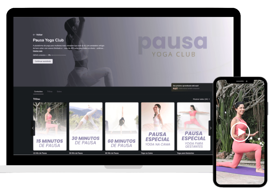 Ao se inscrever nesta oferta, se você ainda não é aluna, ganha 1 ano de acesso ao Pausa Yoga Club, para garantir o local perfeito para praticar, criar sua rotina de yoga e evoluir com constância no tapetinho.