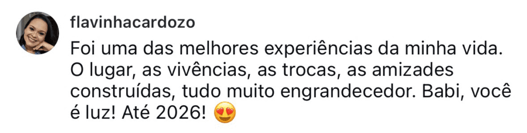 Desde 2021, a cada ano escolhemos um lugar especial para nos encontrarmos presencialmente e vivermos uma experiência única de presença e conexão. E 2026 tem um significado ainda mais profundo… Vamos para Caraíva! Um lugar onde o rio encontra o mar, onde o tempo desacelera e o coração acalma, com os pés na areia.