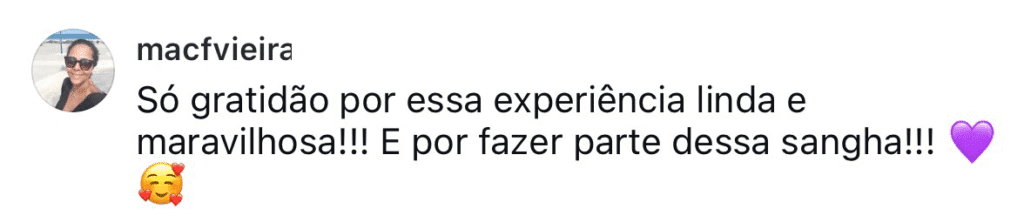 Uma programação rica em vivências transformadoras: práticas de yoga, meditação, momentos de silêncio, autoconhecimento e conexão com a natureza. Tudo isso em um ambiente de acolhimento e troca com um grupo maravilhoso, que torna essa experiência ainda mais especial e significativa.